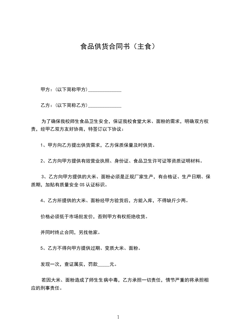 为了确保我校师生食品卫生安全,保证我校食堂大米、面粉的需求,明确双方权责,经甲乙双方友好协商,特签订以下协议: