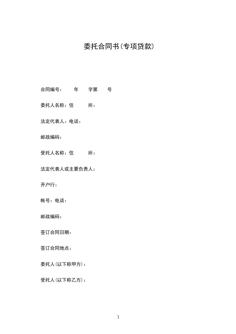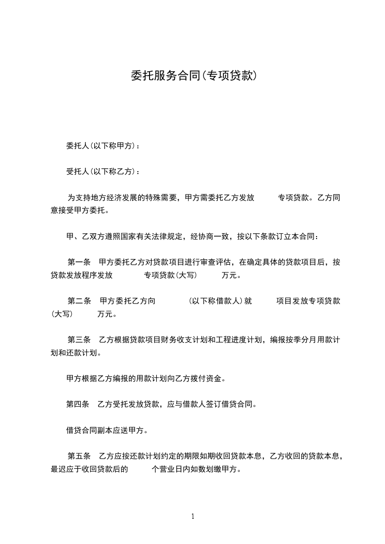 第一条 甲方委托乙方对贷款项目进行审查评估,在确定具体的贷款项目后,按贷款发放程序发放 专项贷款(大写) 万元。