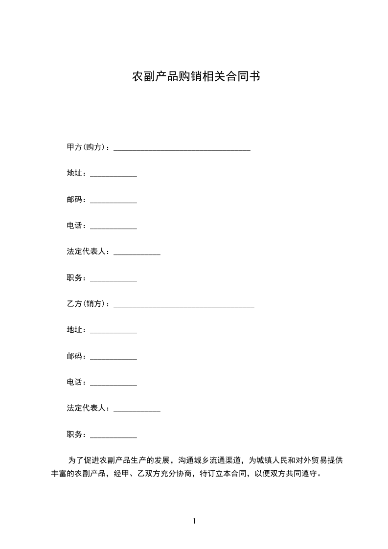 为了促进农副产品生产的发展,沟通城乡流通渠道,为城镇人民和对外贸易提供丰富的农副产品,经甲、乙双方充分协商,特订立本合同,以便双方共同遵守。