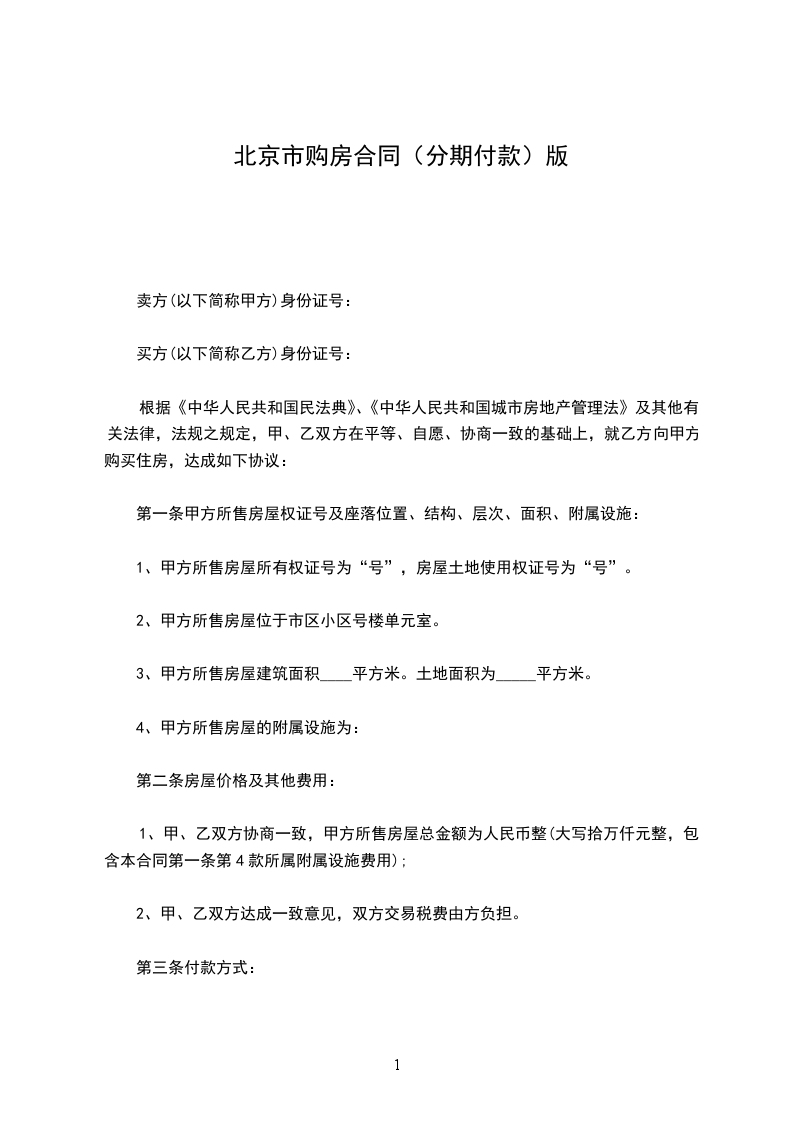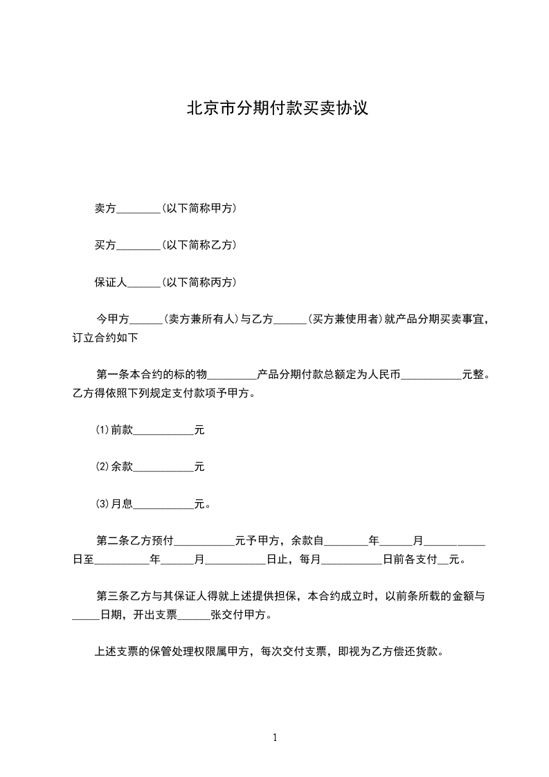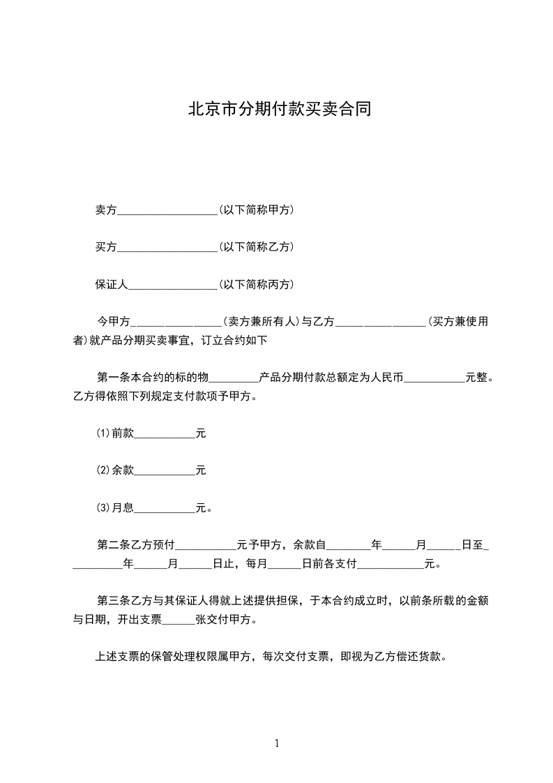 第一条本合约的标的物_________产品分期付款总额定为人民币___________元整。乙方得依照下列规定支付款项予甲方。