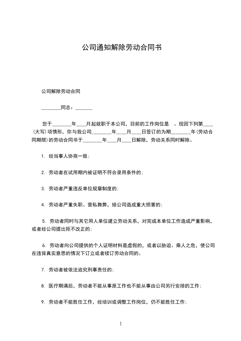1、您与公司签订的劳动合同将于______年____月____日终止。