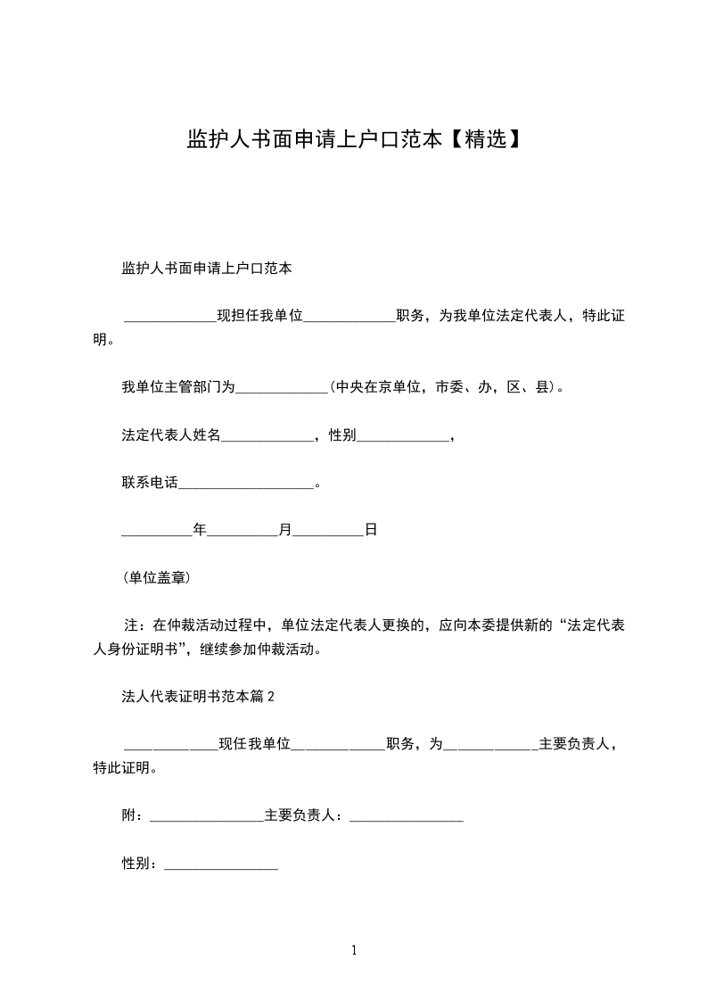 兹有本人________,性别:________,身份证号:_____________________,家庭住址:________省________市________镇________村________号(门牌号),因本人已离婚,申请孩子户口跟随本人,本人自愿做孩子的监护人,并负责解决_____________(孩子姓名)的学习、生活及其他问题。