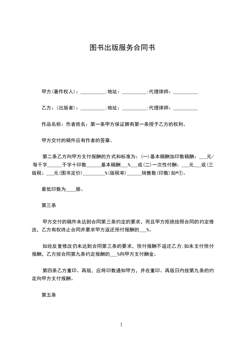 乙方:(出版者):__________;地址:__________;代理律师:__________
