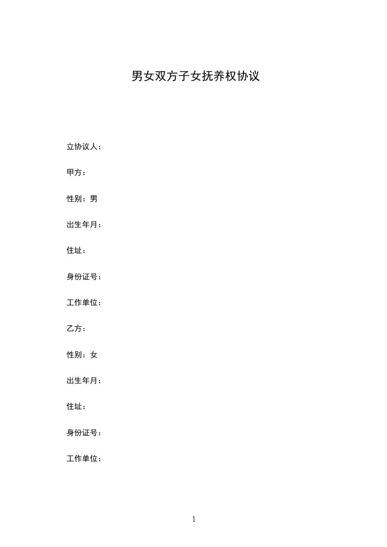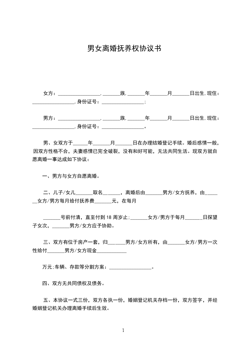 女方:_________________,_______族,_______年_______月_______日出生,现住:_________________,身份证号:_________________;