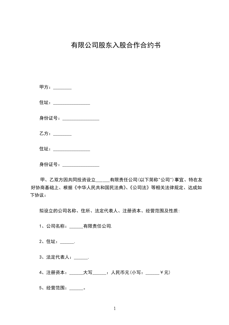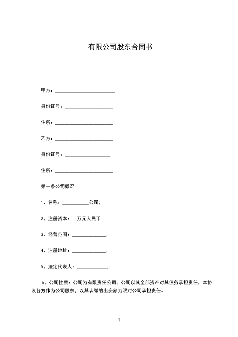 甲、乙双方因共同投资设立______有限责任公司(以下简称"公司")事宜、特在友好协商基础上、根据《中华人民共和国民法典》、《公司法》等相关法律规定、达成如下协议: