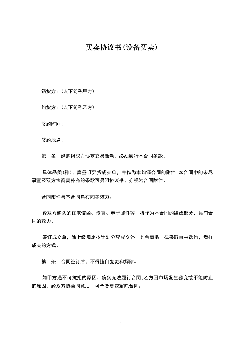 第一条 经购销双方协商交易活动,必须履行本合同条款。