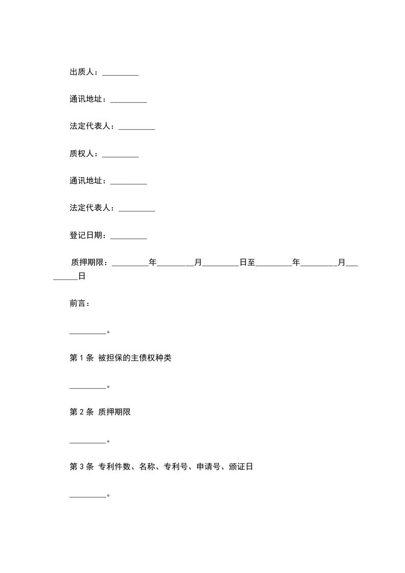 第四条甲方应于_____年_____月_____日将质押财产产付乙方占有并同时向乙方支付保管费_____元。