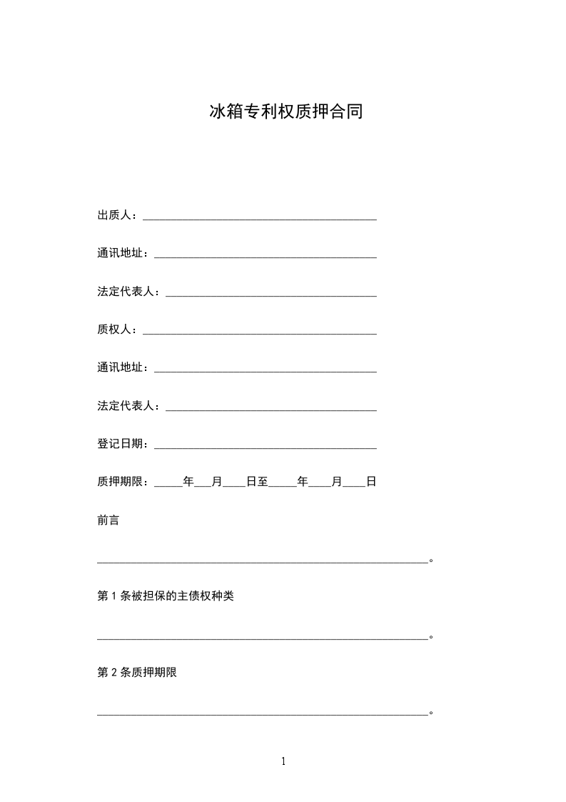 质权人(乙方):通讯地址:法定代表人: