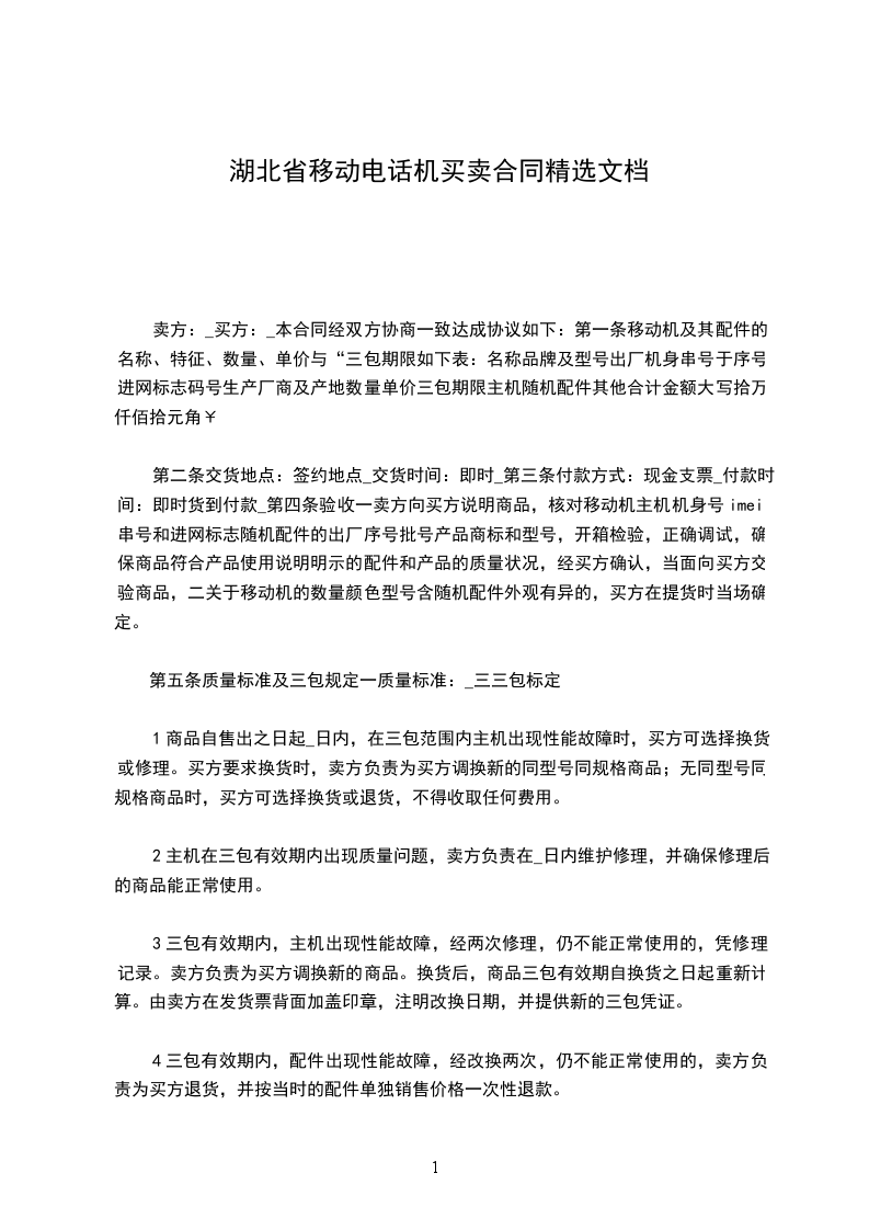 (二)对于移动电话机的数量颜色型号(含随机配件).外观有异的,买方在提货时当场确定。