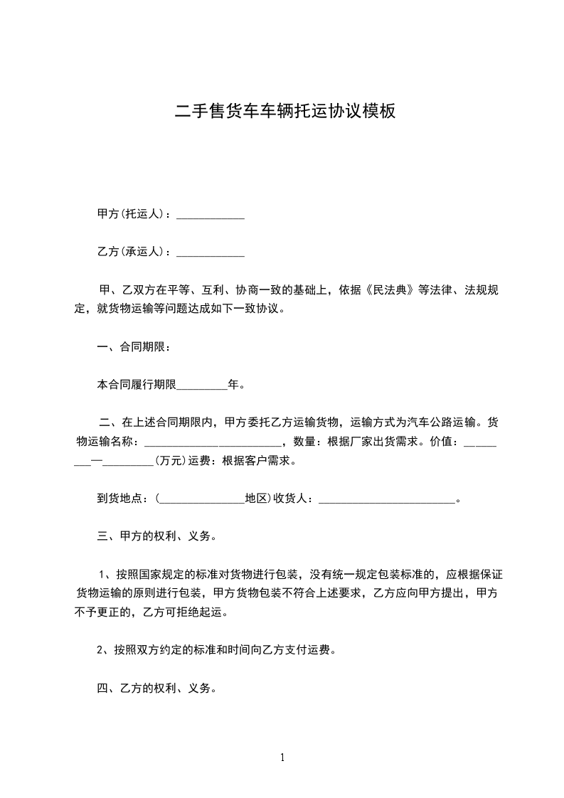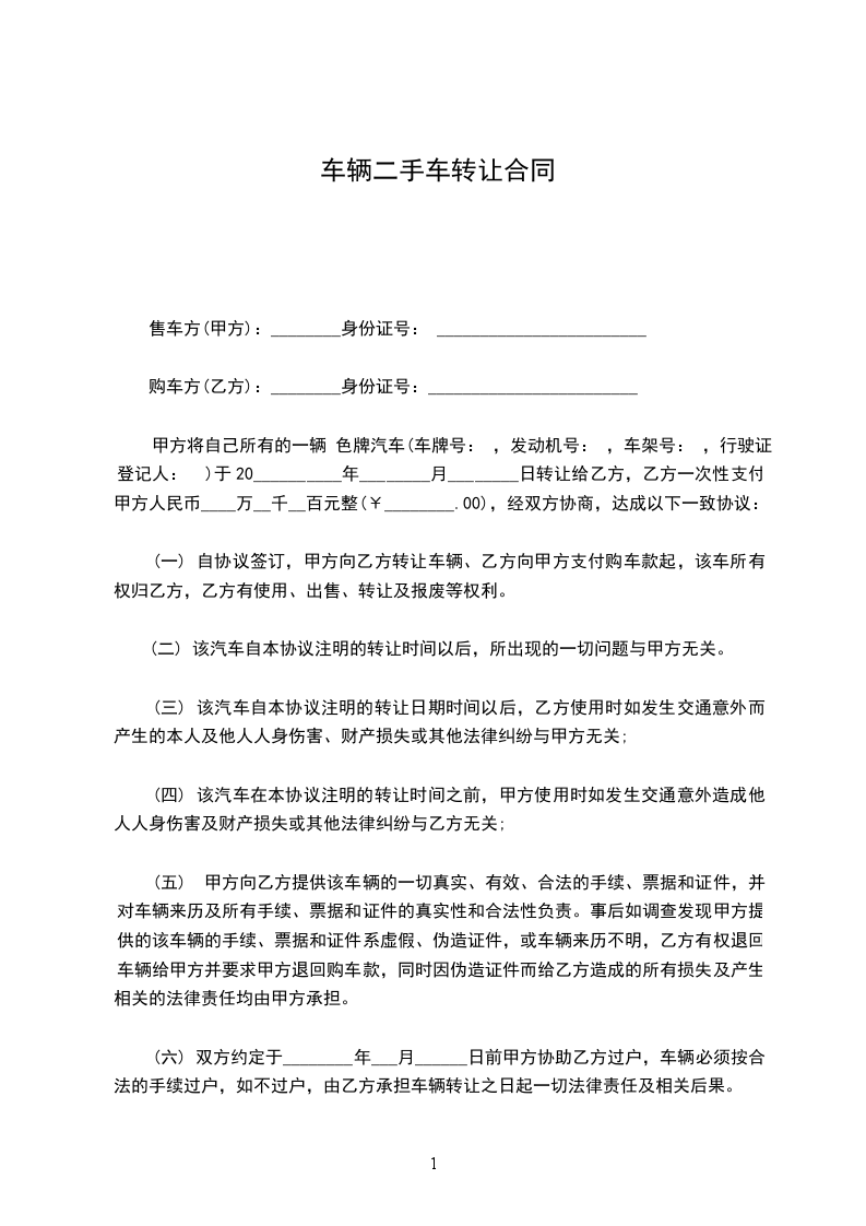 1. 车辆价格:人民币(大写)__________________元(¥__________________元)。