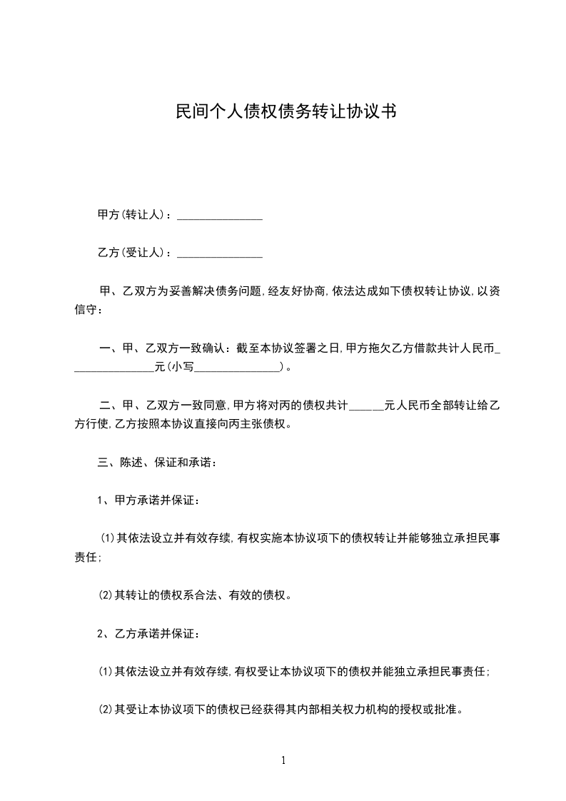 甲、乙双方为妥善解决债务问题,经友好协商,依法达成如下债权转让协议,以资信守: