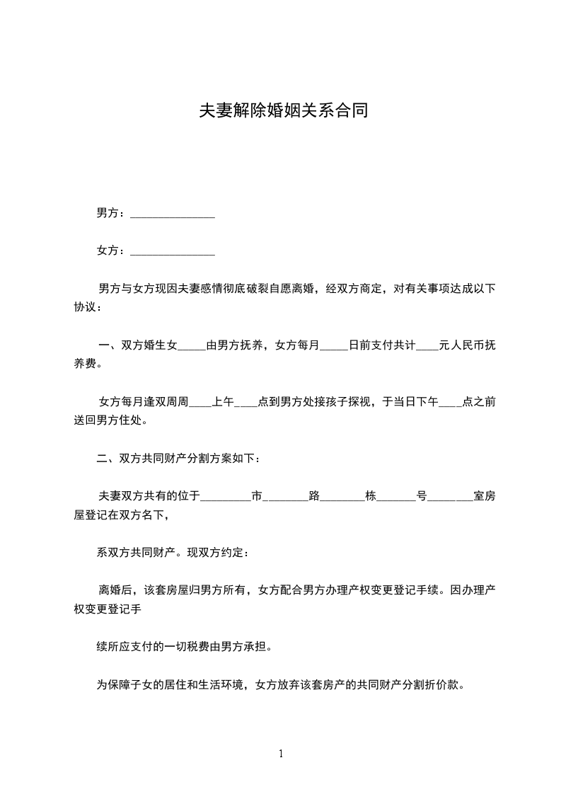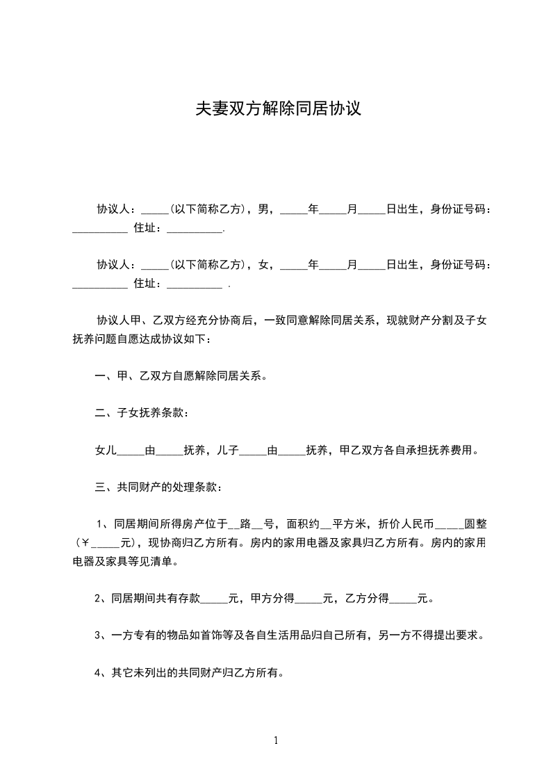 协议人:___________,女,__________年_____月_____日出生,住__________市_______________路_______________号。