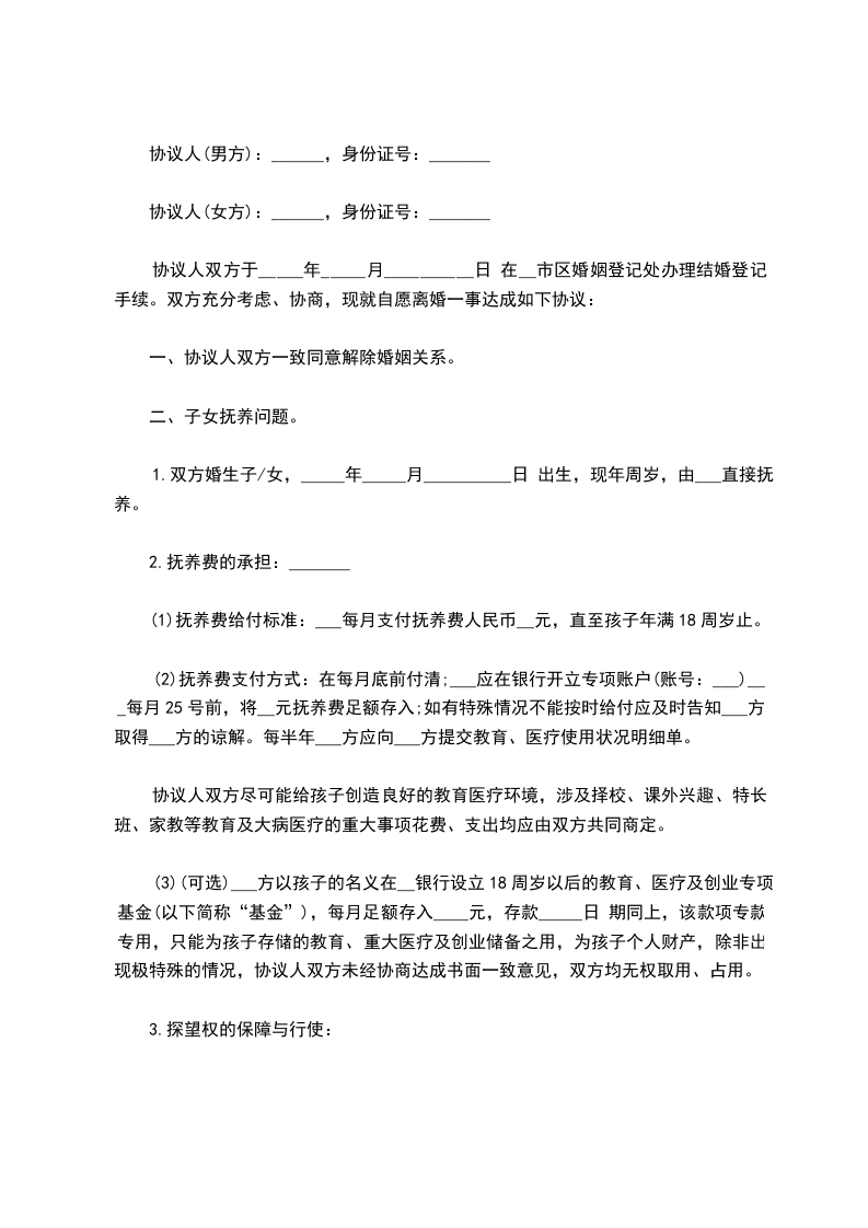 本协议一式叁份,双方各执一份,婚姻登记机关存档一份,在双方签字,并经婚姻登记机关办理相应手续后生效。