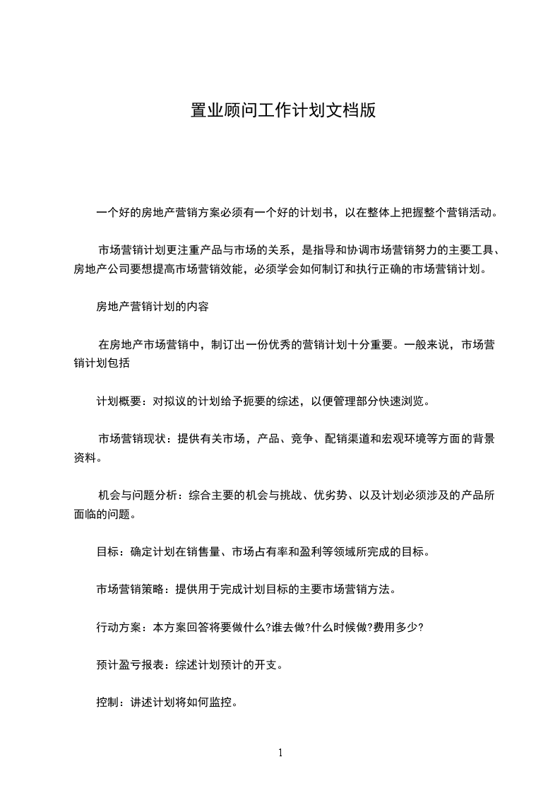 工作中我们不仅要随时做好工作总结,更要做好工作计划,这样才不会乱了手脚,请看下文置业顾问工作计划。