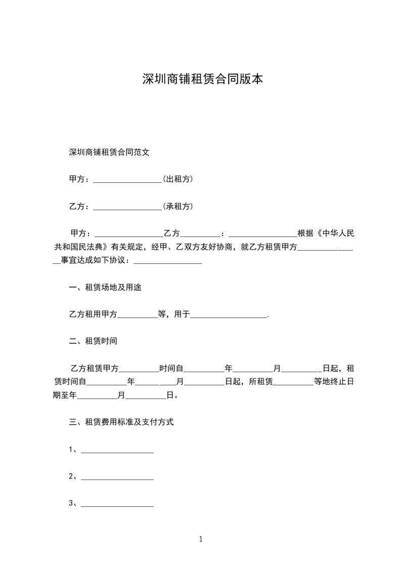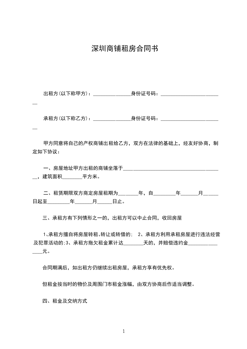 一、房屋地址甲方出租的商铺坐落于________________________________________,建筑面积________平方米。