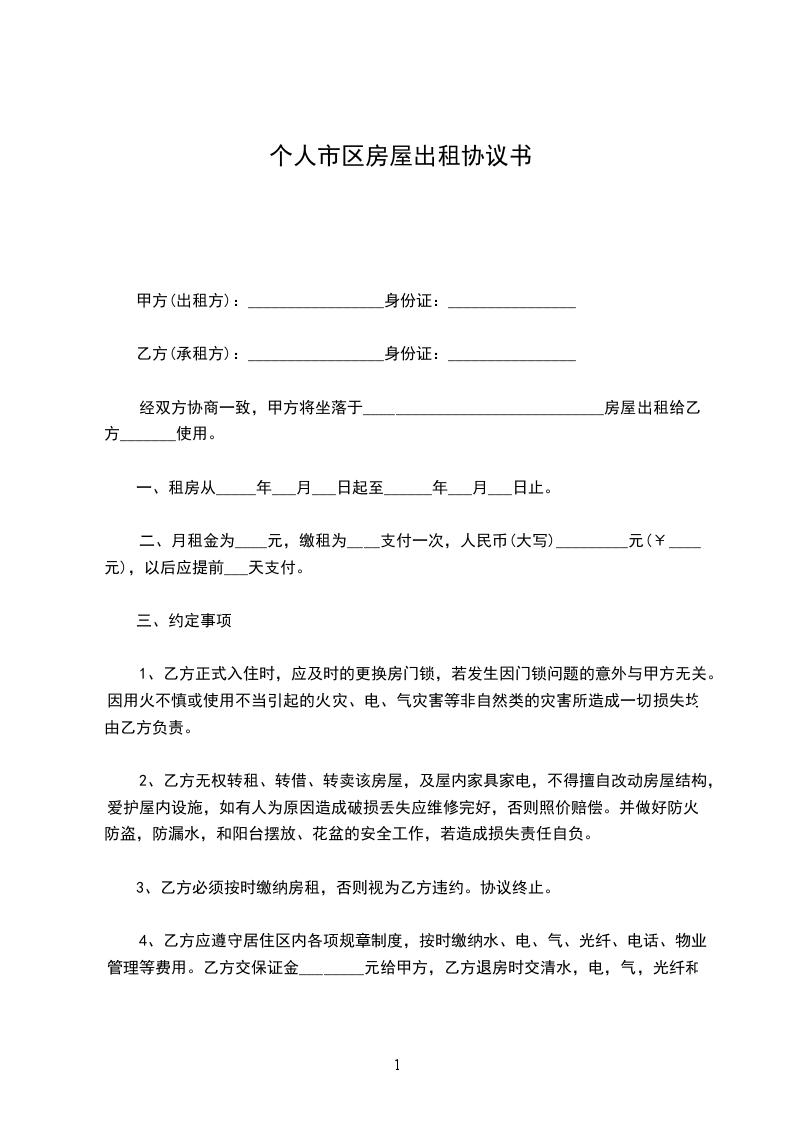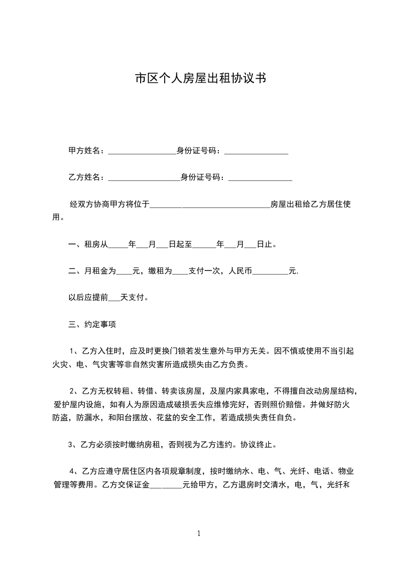 4、乙方应遵守居住区内各项规章制度,按时缴纳水、电、气、光纤、电话、物业管理等费用。乙方交保证金________元给甲方,乙方退房时交清水,电,气,光纤和物业管理等费用及屋内设施家具、家电无损坏,下水管道,厕所无堵漏。甲方如数退还保证金。