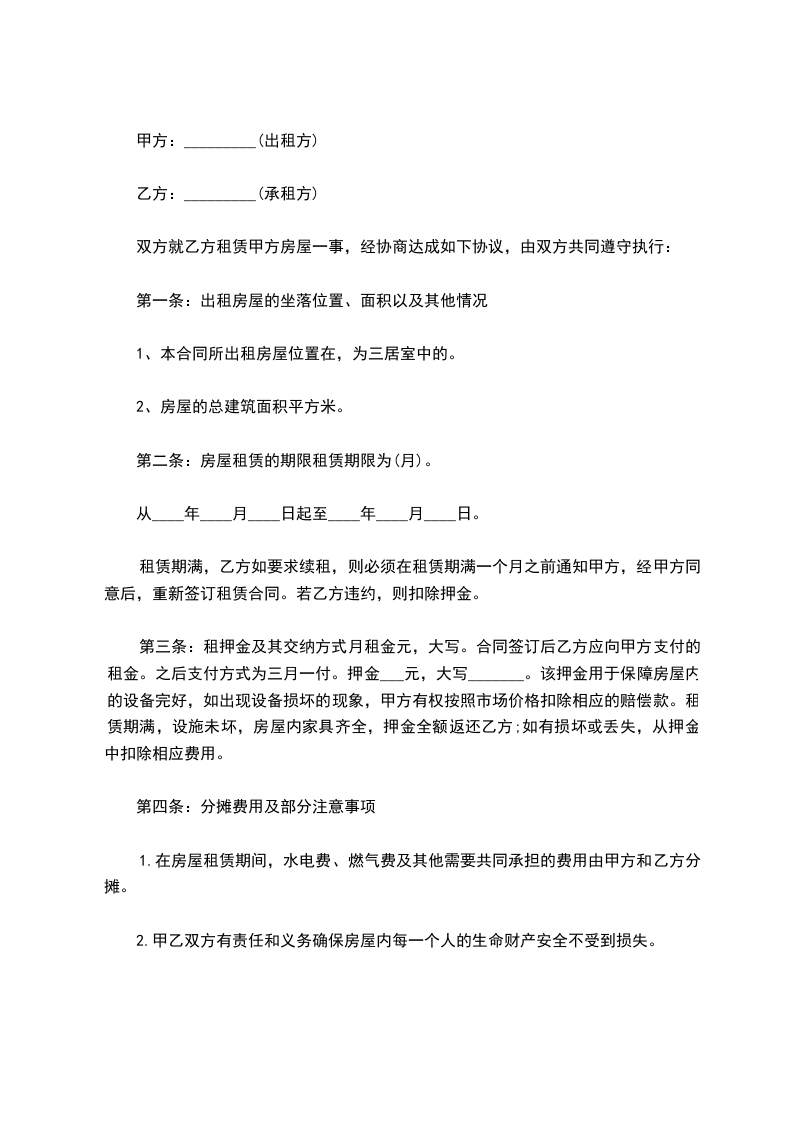 2.甲乙双方有责任和义务确保房屋内每一个人的生命财产安全不受到损失。