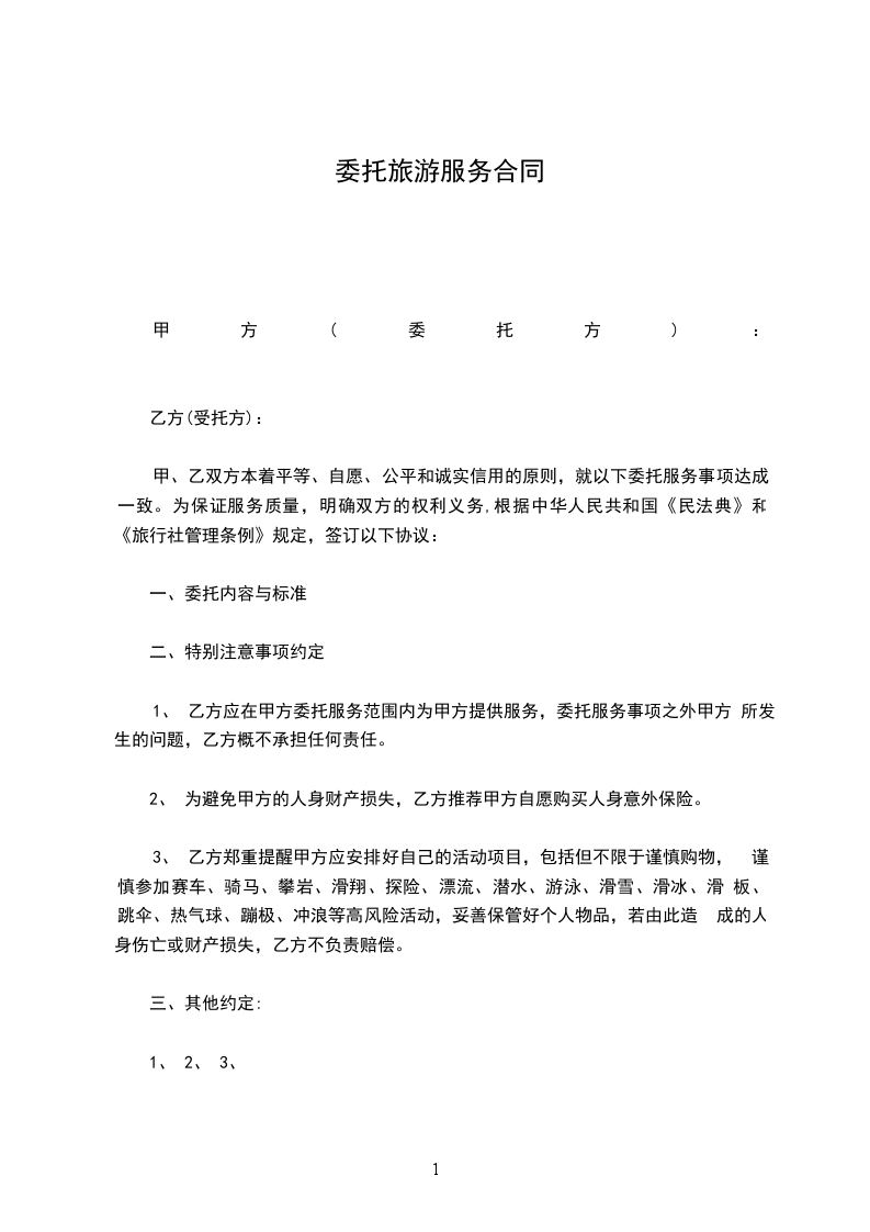 第二条(服务标准)本旅游团服务质量执行国家旅游局颁布实施的《旅行社旅游服务量》标准(或有甲、乙双方约定)。