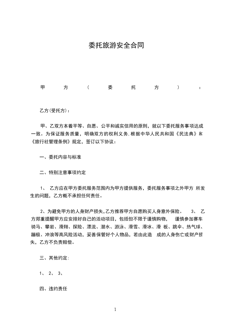 5、甲方在旅游中发生人身伤害或财产损失事故时,乙方应作出必要的协助和处理。