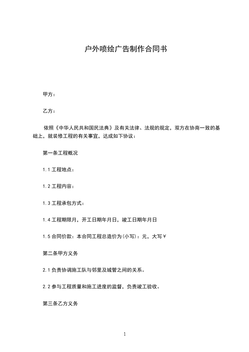 1.5合同价款:本合同工程总造价为(小写):元,大写¥
