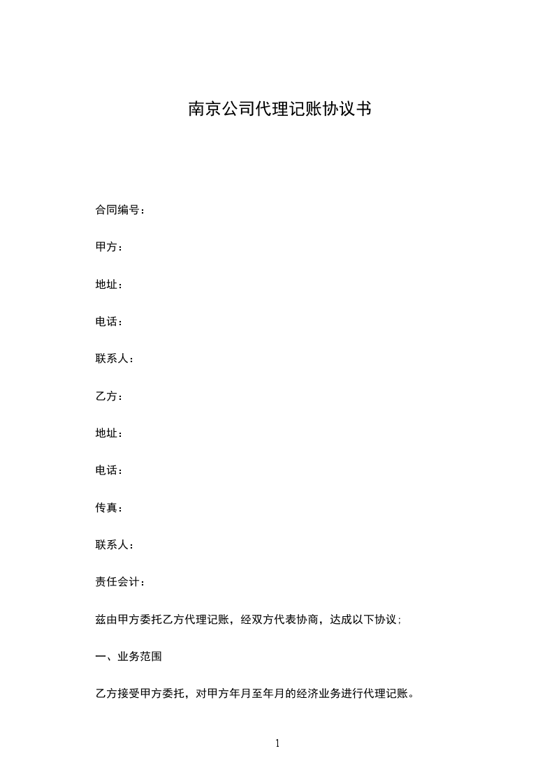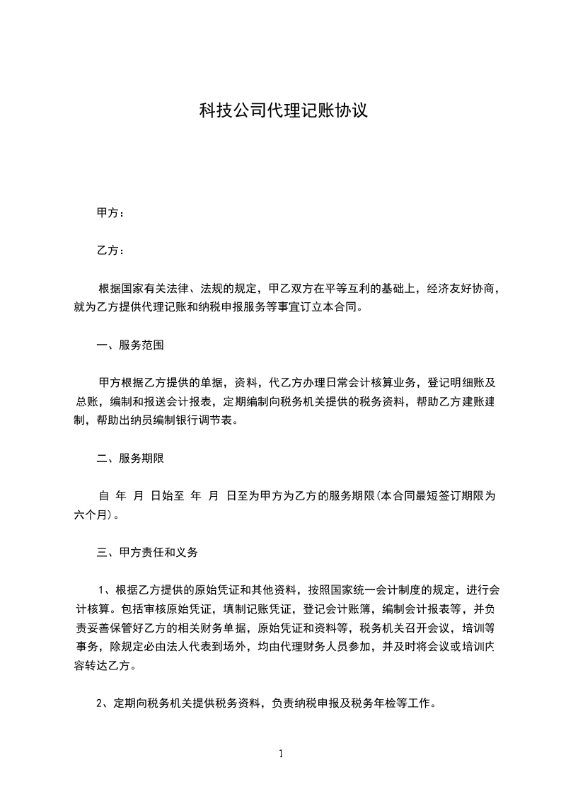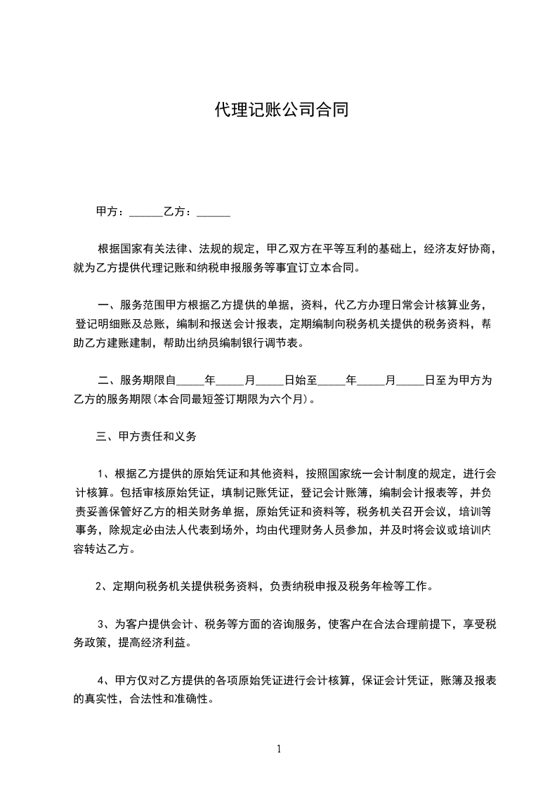 乙方接受甲方委托,对甲方年月至年月的经济业务进行代理记账。