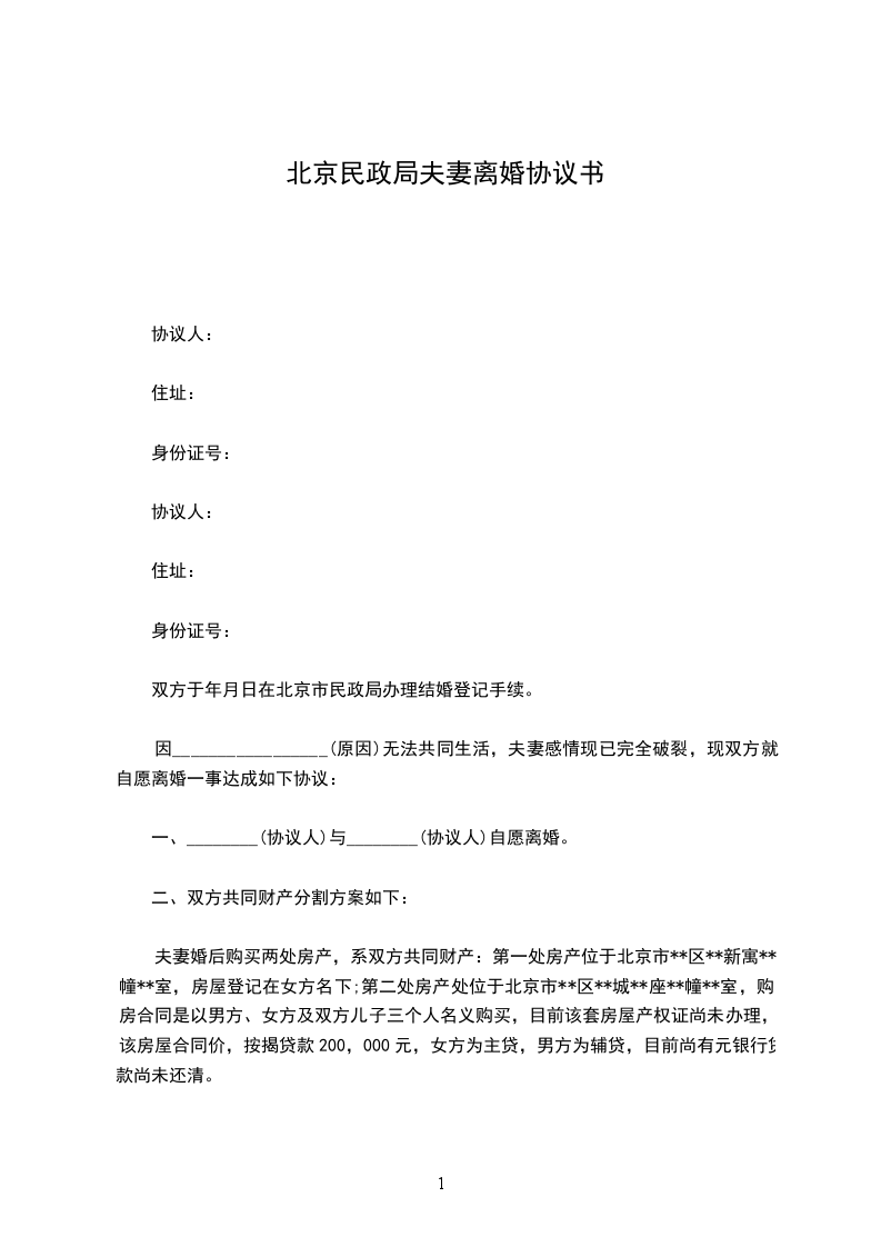 1、甲方同意座落于____________________房屋一套归乙方所有,以及甲乙双方婚姻存续期间的其它全部财产归乙方所有。