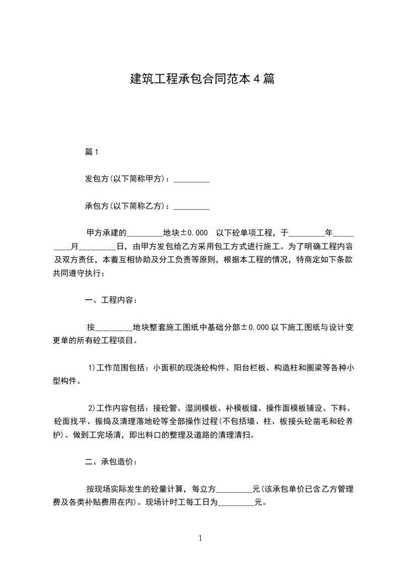 1. 开工日期:本工程定于____年____月____日开工。