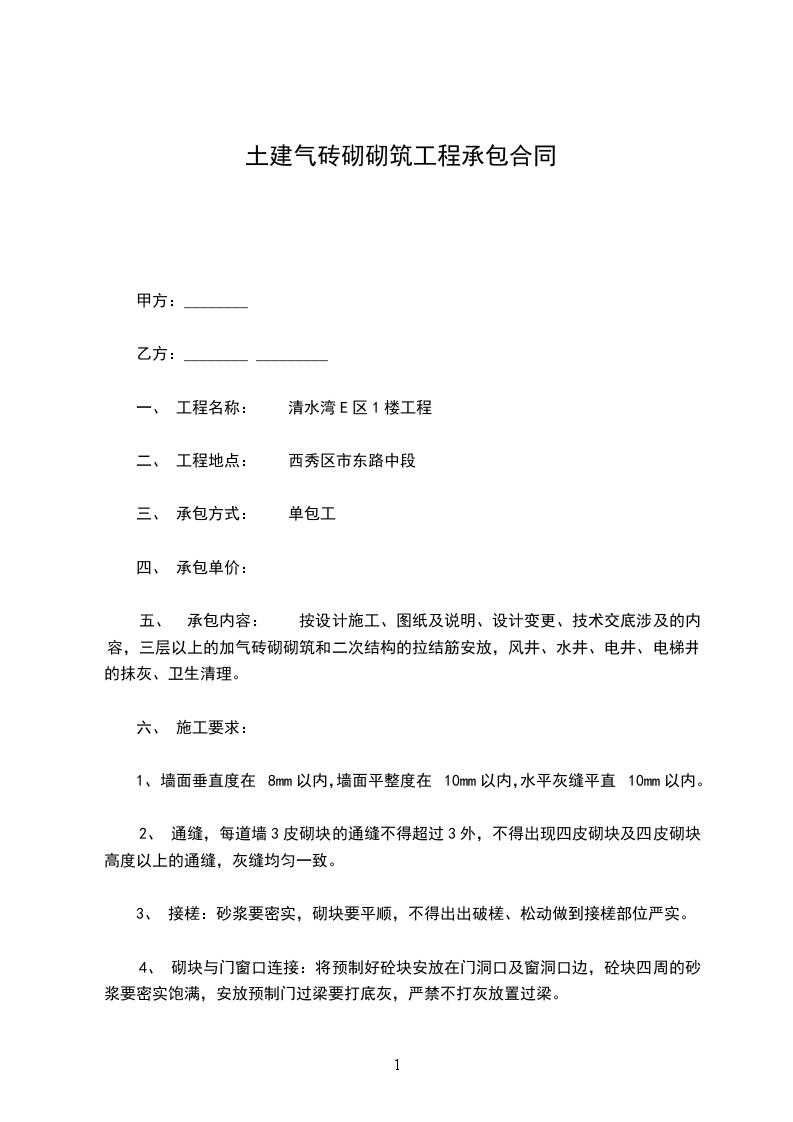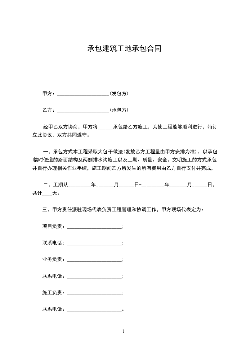 1. 承包方式:乙方采用[具体承包方式,如包工包料、包工不包料等]方式进行承包。