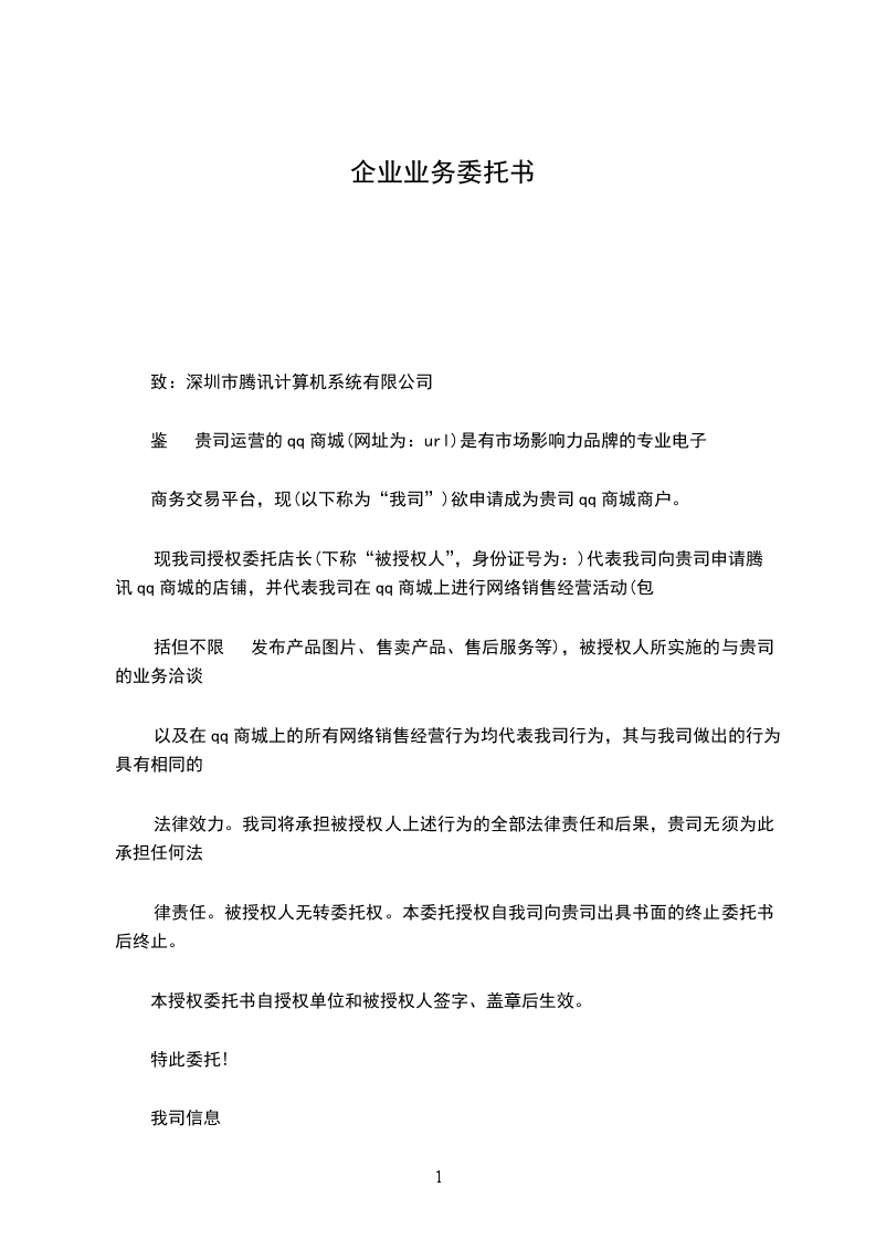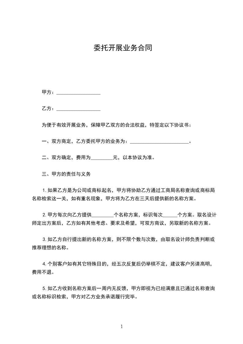 一、双方商定,乙方委托甲方的业务为:________________________。
