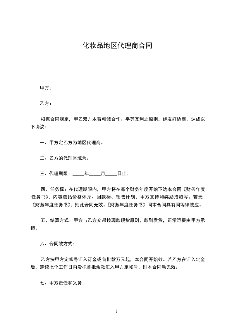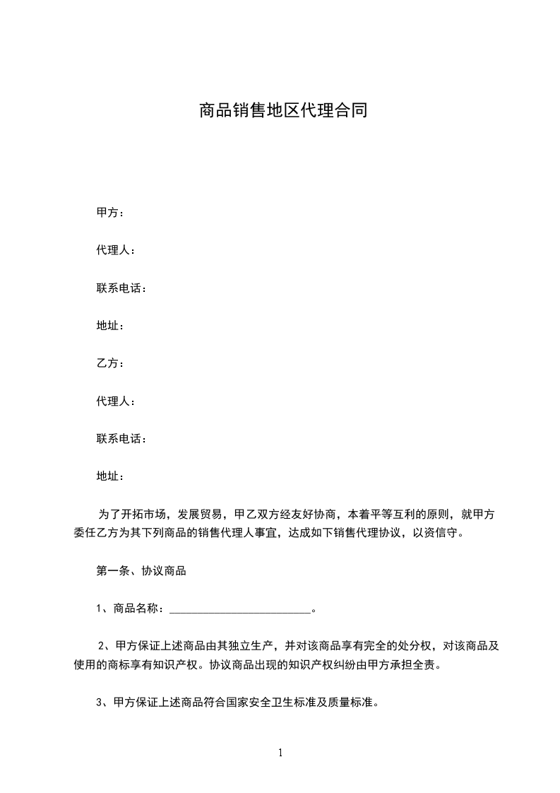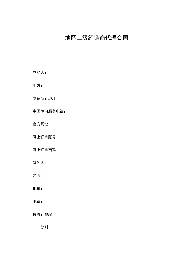 一、甲方定乙方为(北京)地区代理商。