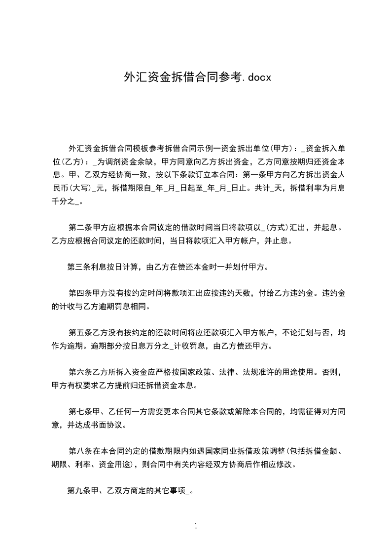 第3条 乙方应于_________年______月____日将拆借外汇资金划入甲方题述账户。