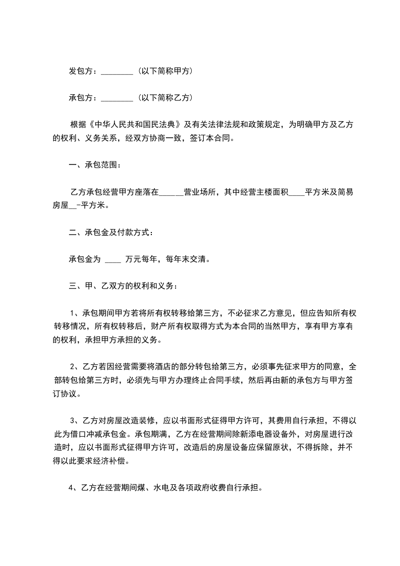 1、 承包期限为__年,即从20__年_月_日起至20__年_月_日止。实际承包期限自甲方移交之日起算。