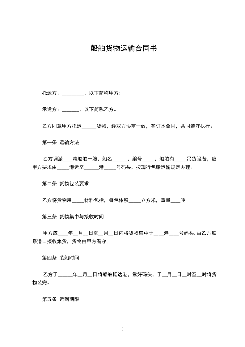 乙方应于_________年_________月_________日_________时前将货物运达目的港码头。