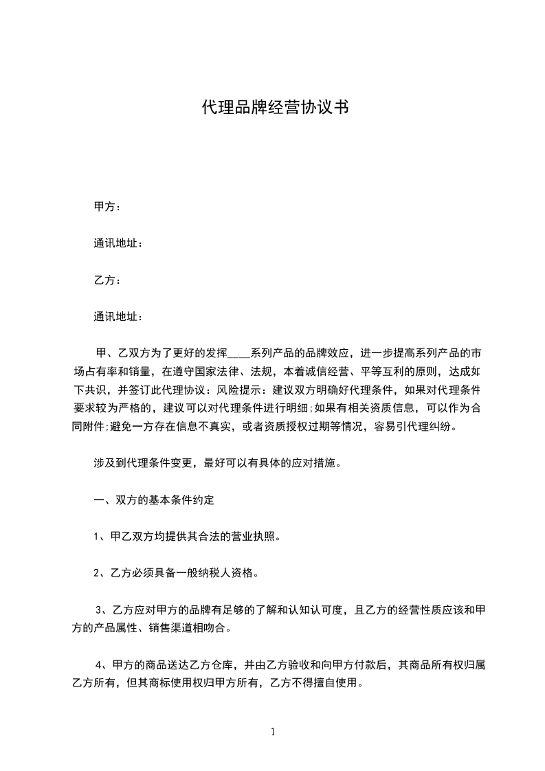3、乙方应对甲方的品牌有足够的了解和认知认可度,且乙方的经营性质应该和甲方的产品属性、销售渠道相吻合。