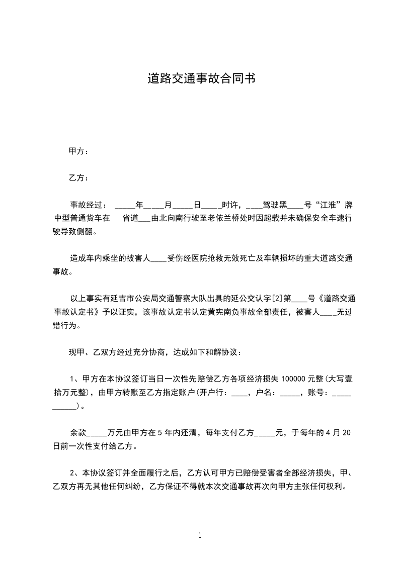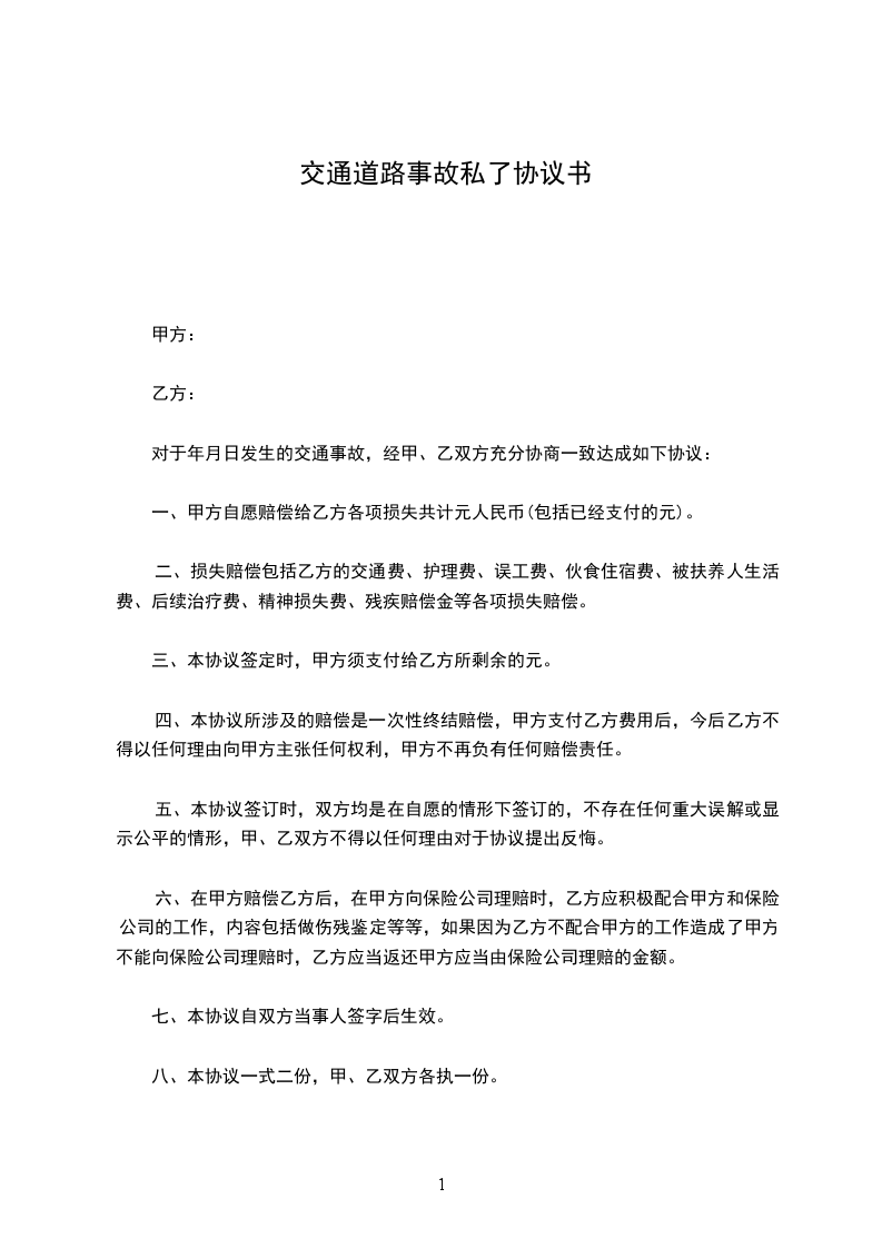 对于______年____月____日发生的交通事故,经甲、乙双方充分协商一致达成如下协议: