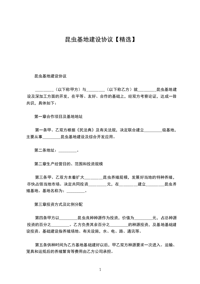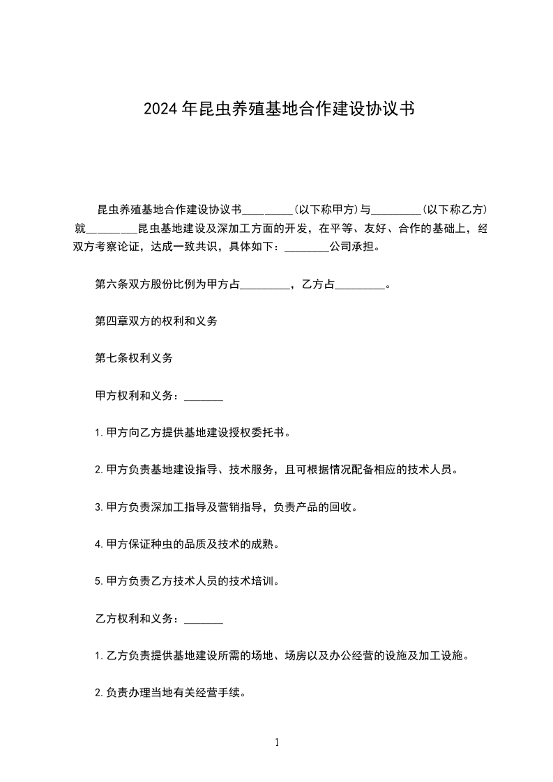_________(以下称甲方)与_________(以下称乙方)就_________昆虫基地建设及深加工方面的开发,在平等、友好、合作的基础上,经双方考察论证,达成一致共识,具体如下: