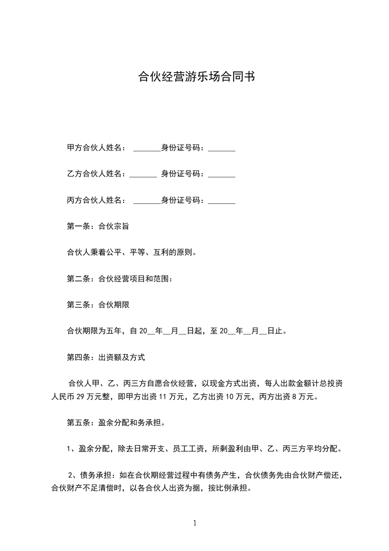 篇1 游乐场承包经营协议