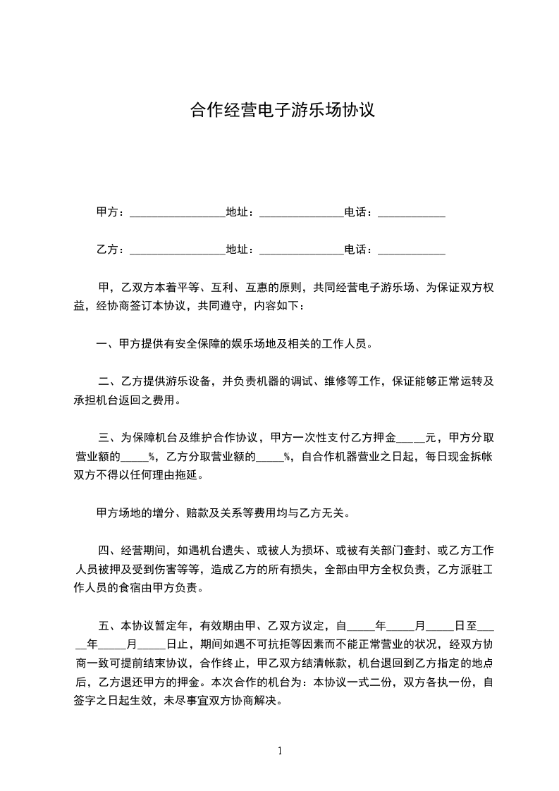 - 合法经营游乐场,遵守国家法律法规及行业规范,不得从事违法违规及损害甲方利益的经营活动。