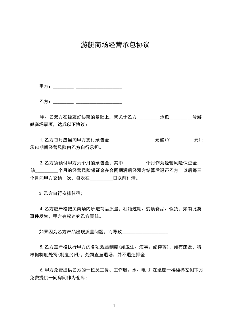 1. 乙方应向甲方支付承包费,承包费标准为每月人民币______元(大写:______元整)。