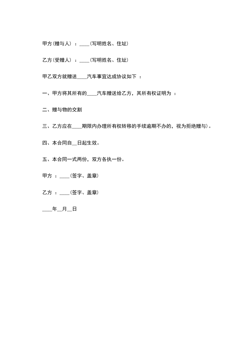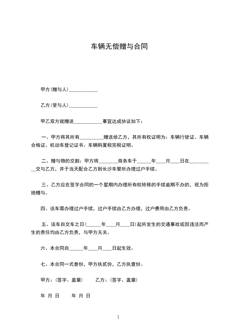 乙方无偿将该车辆借给甲方使用,使用起止日期为_____年_____月_____日至_____年_____月_____日。
