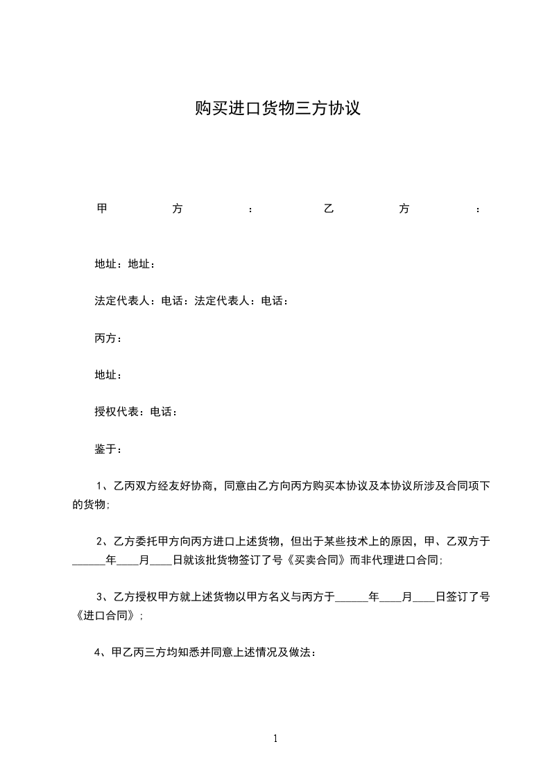 3、乙方授权甲方就上述货物以甲方名义(而非乙方名义)与丙方于________年____月____日签订了号《进口合同》(以下称“进口合同”);且