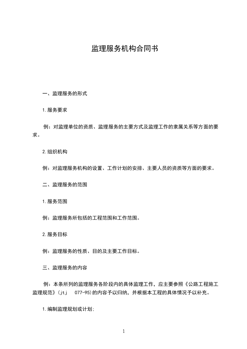 例:对监理服务机构的设置、工作计划的安排、主要人员的资质等方面的要求。