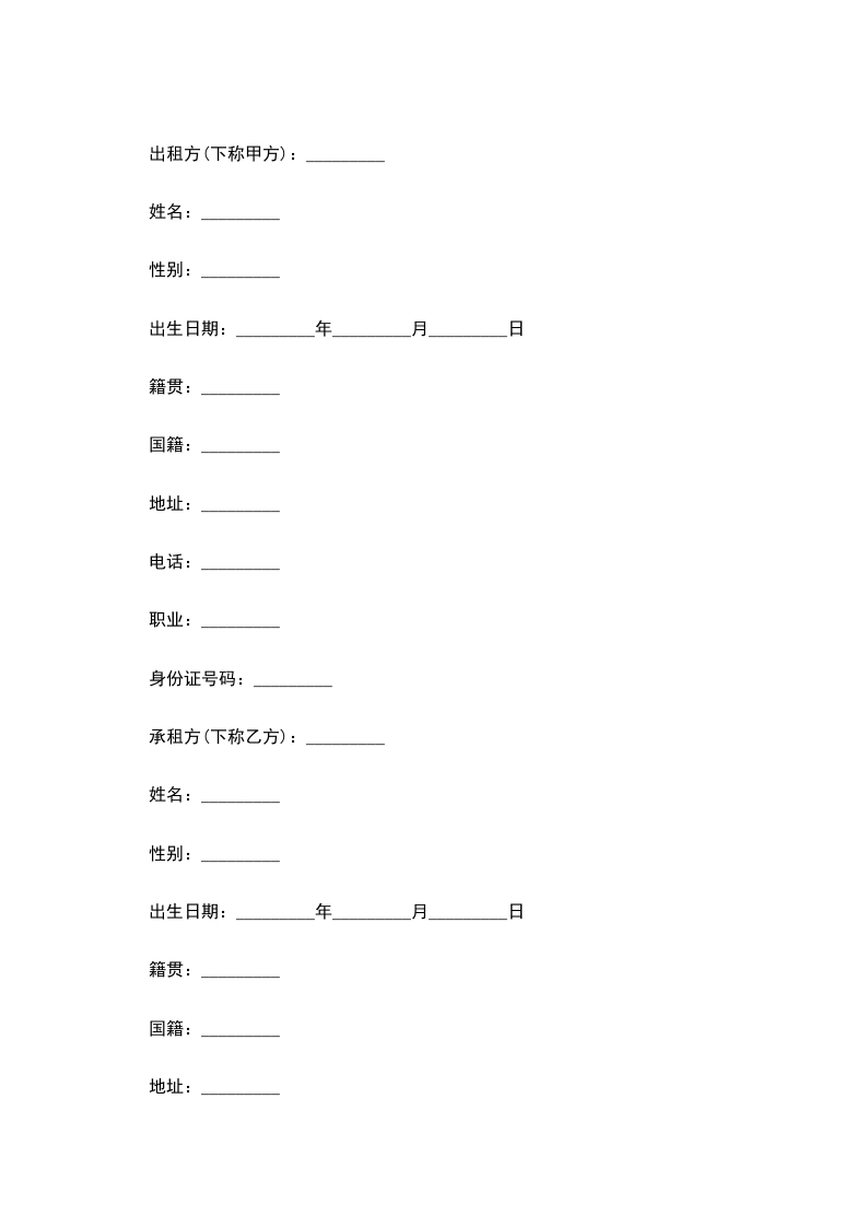 承租方(下称乙方):_________