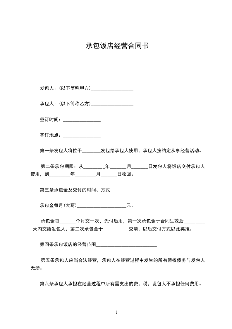 第四条承包饭店的经营范围__________________________