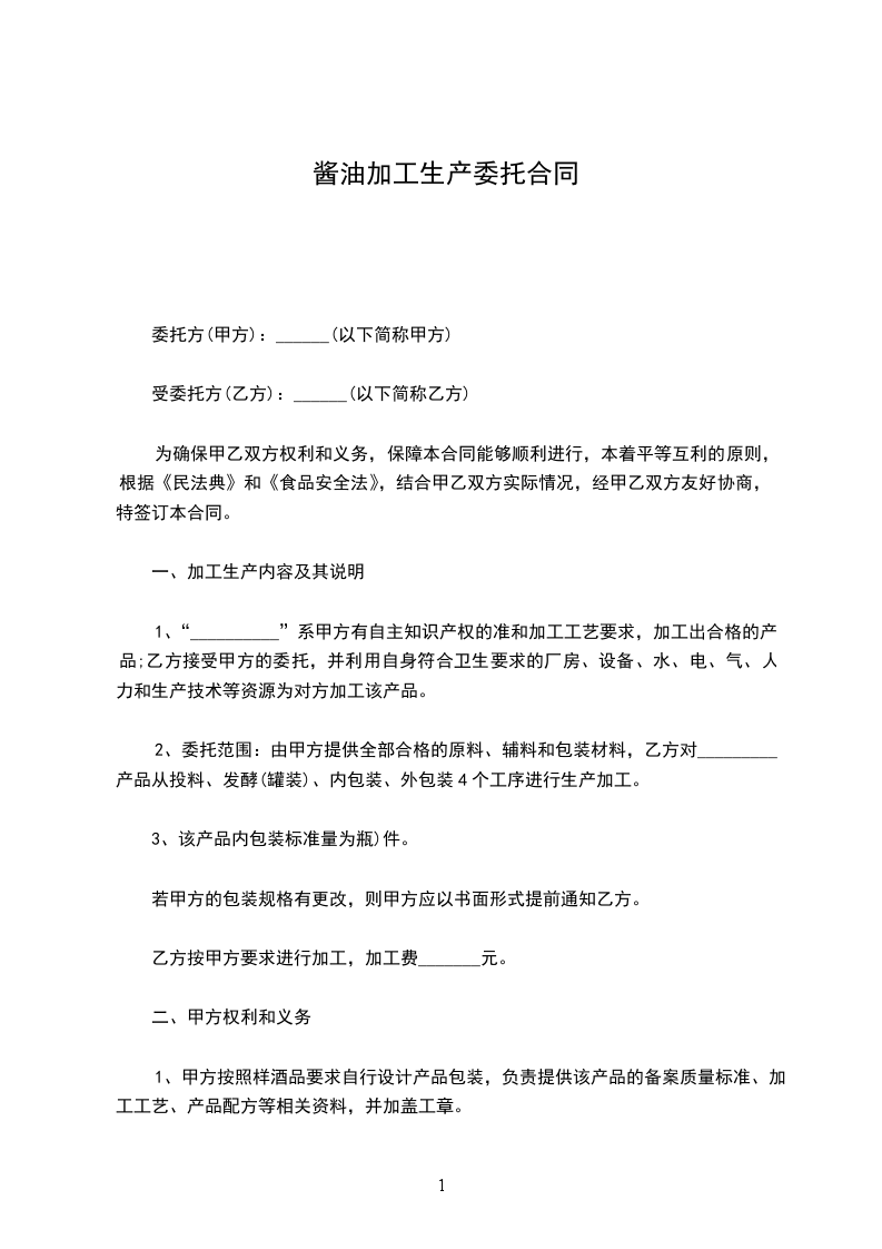 1.乙方严格按照甲方提出的质量要求进行加工,于_____年_____月_____日制作出样品,经甲方确认后封样,该样品由甲方保存。