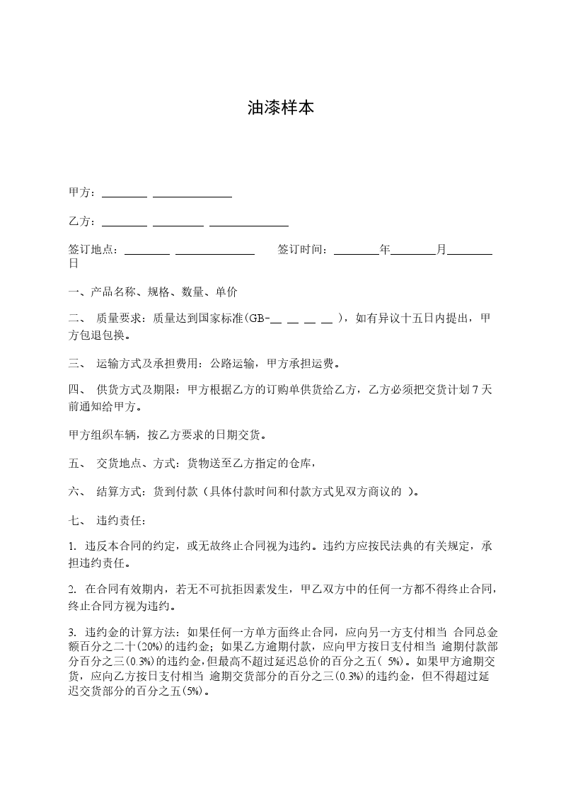 1.乙方必须严格按照双方规定的时间交货,如逾期交货,乙方应向甲方支付价款总值20%的违约金;