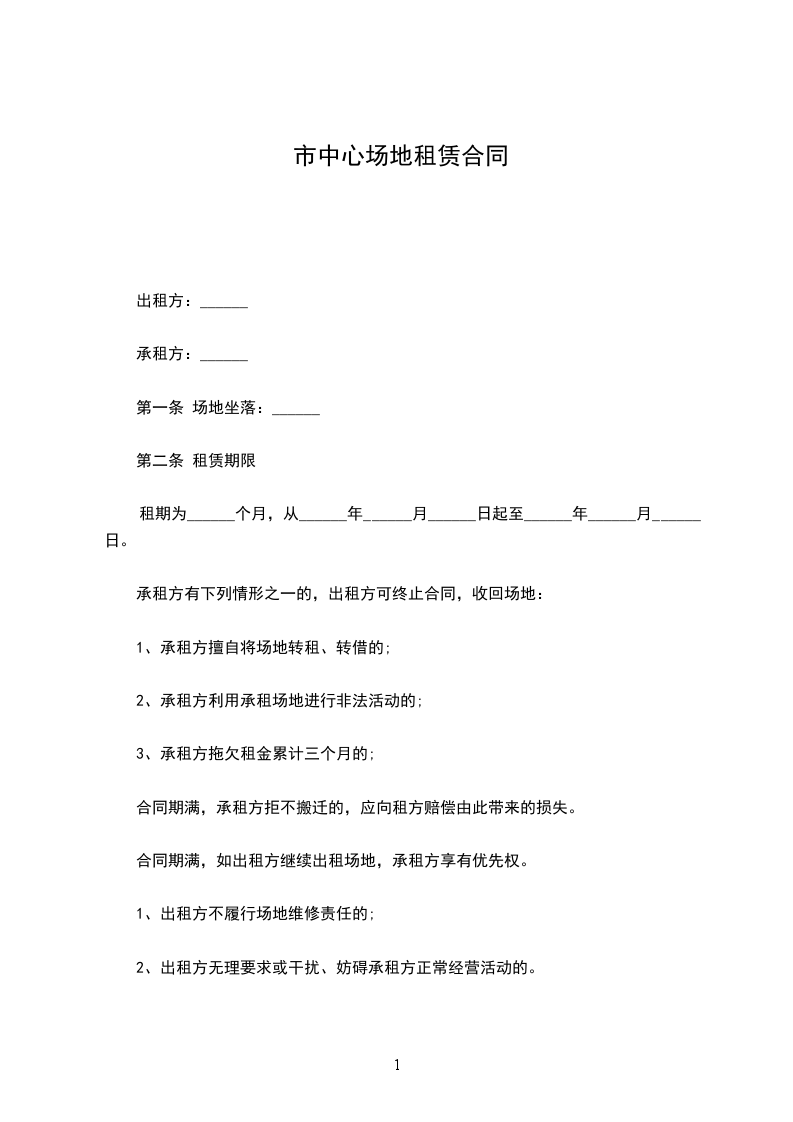 八、合同约定的租赁期限界满或双方协商一致解除合同后____日内,乙方应向甲方办理交接手续,交接时乙方应保证工作人员撤离、将属于自己的设备腾清,并将租赁范围内的垃圾杂物等清理净。