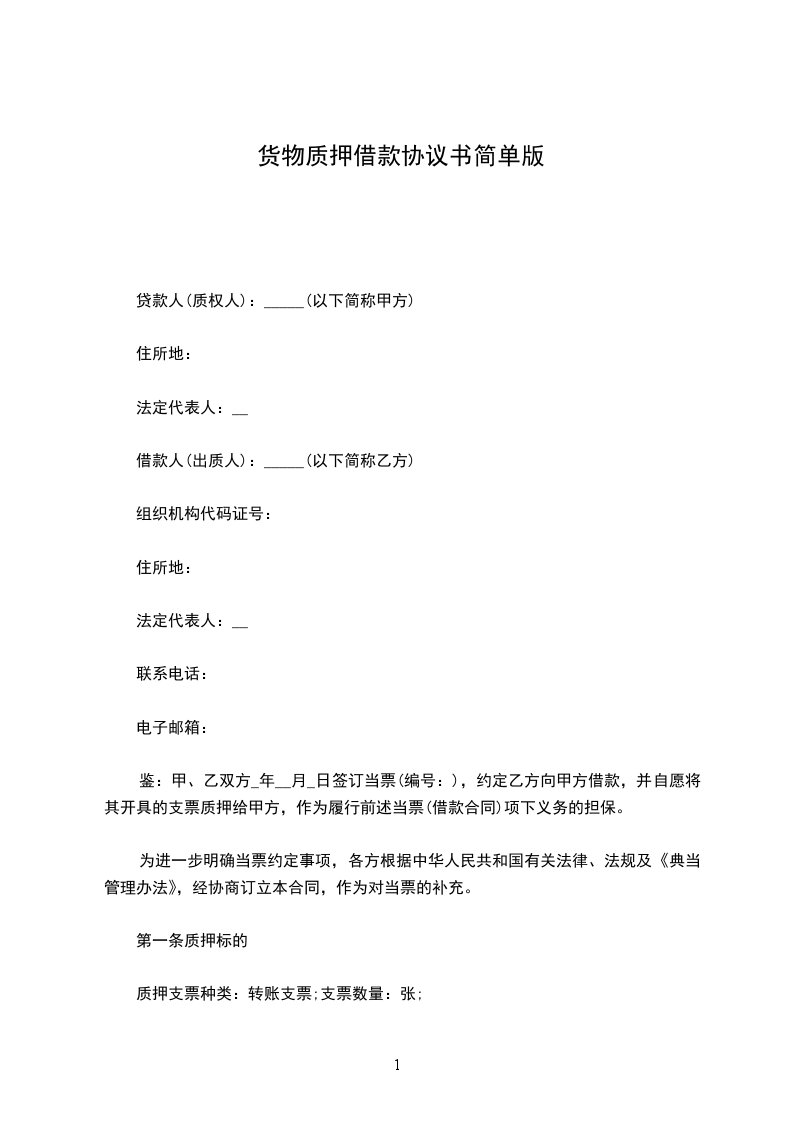 1.1乙方自愿将自有的________(以下简称货物),规格________数量________(该数量由双方点库确认)帐面价格________质押典当给甲方。