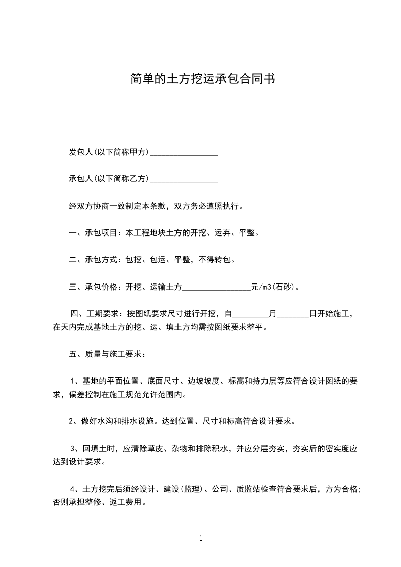 二、承包方式:包挖、包运、平整,不得转包。
