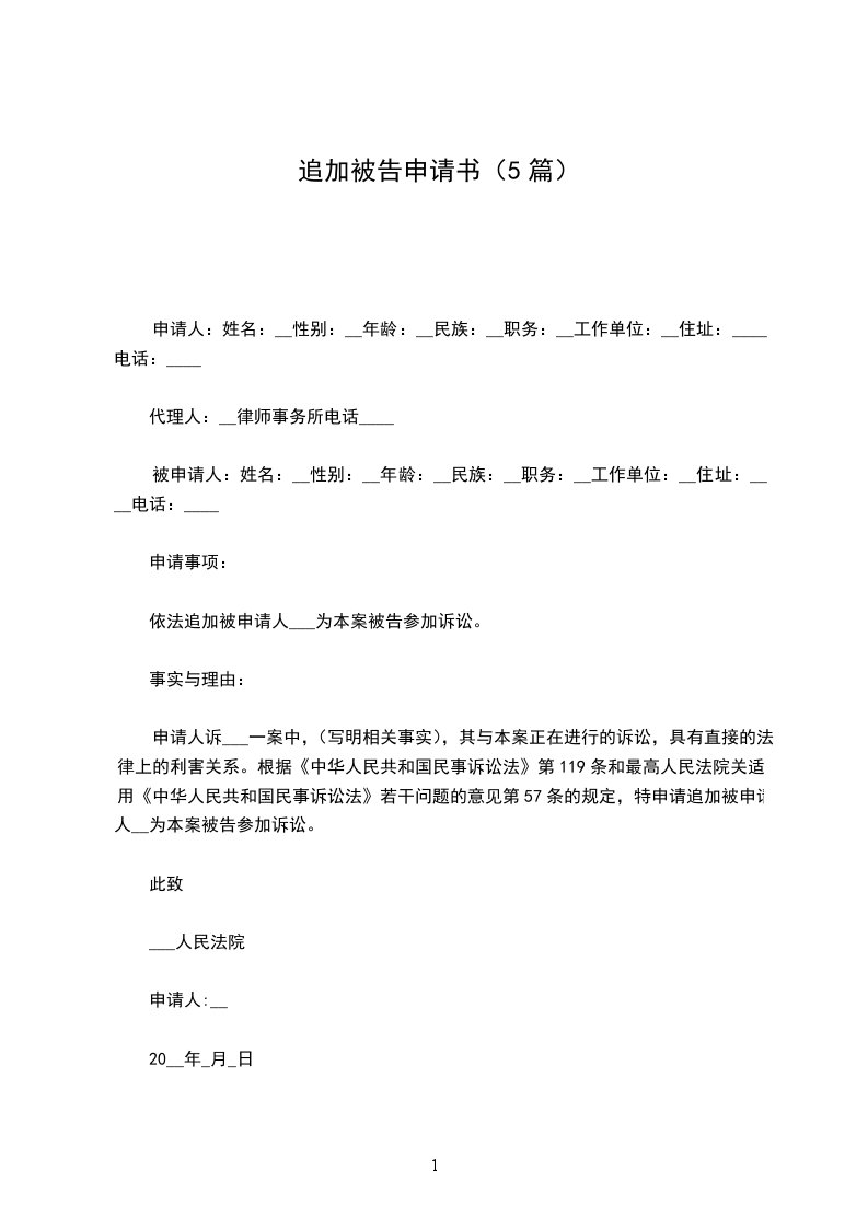 篇1《追加被告申请书》
